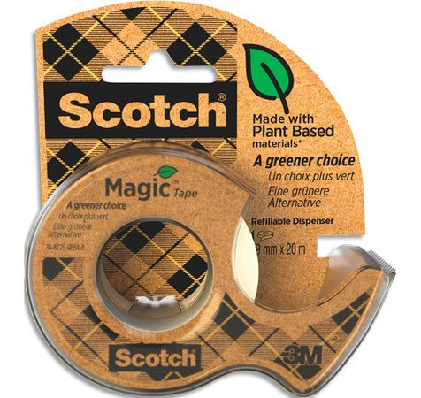 Livré avec un rouleau de ruban Scotch Magic 900 19 mm x 20 m ; sans solvant, bague en carton 100 % recyclée.