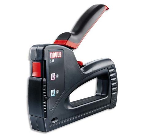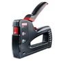 Agrafeuse Murale/ cloueur avec un boîtier ABS de haute qualité. Mécanisme de chargement d'agrafes par bouton poussoir équipé d'un verrou. Poignée en métal. Fenêtre d'inspection d'agrafes. Mécanisme coulissant pour changer facilement les agrafes à fil fin ou plat. Réglage de la puissance de frappe.
