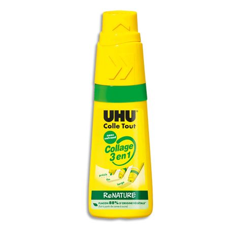 Colle ultra-forte transparente (nouvelle formule renforcée) et multi-matériaux (tous papiers, cartons, bois, plastiques, tissu...). Flacon en plastique souple : facile d'utilisation, ne se perce pas, ne fuit pas et tient debout sur le bureau. Applicateur 3 positions à débit contrôlé : précis fin et large. Contenance 35 ml.