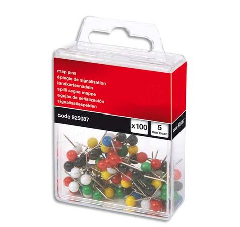 Boite De 100 Épingles De Signalisation Tete Boule Dia Coloris Assortis.