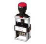 Encrage automatique bicolore Réglage par molette. Plaque rainurée pour placer une des quatre formules commerciales : "Reçu le, Payé le, Comptabilisé le, Saisi le"... "par"