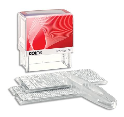 Texte à composer soi-même. Comprend 2 jeux de caractères police 2,5 mm et 3,5 mm ainsi qu'une pincette. Appareil en plastique, coloris blanc. Sous blister A5.