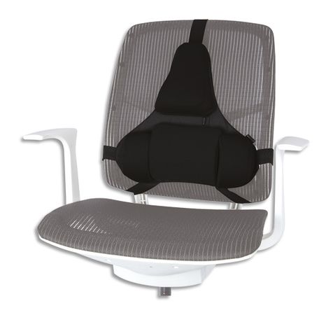 Support des lombaires : 3 sections en mousse à mémoire de forme. Support de la colonne vertébrale avec coussin à mémoire de forme. Système d'attache Tri-Tachment™ triangulaire pour une grande stabilité. S'adapte à tous les types de chaises de bureau. Protection Microban. Dimensions (H x L) : 36,5 x 37,5 cm.