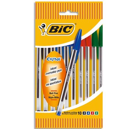 BIC P/10 STYL BIL CRISTAL ASS 830865 566879 Paquet 10 Stylos à bille Bic Cristal® Classique pointe moyenne 4 couleurs 6,07 € TTC