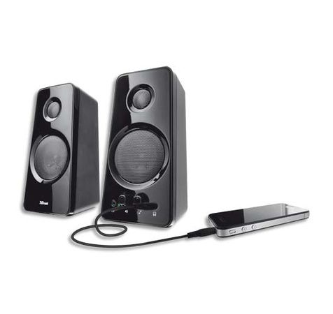 Système d'enceintes de très haute qualité au design élégant et une qualité de son exceptionnelle. Puissance en sortie (crête) de 36 W (18 W RMS). Bouton de réglage du volume et des-Connexion pour casque à l'avant + connexion d'entrée audio supplémentaire pour iPod, iPhone, Smartphone, lecteur MP3, etc.