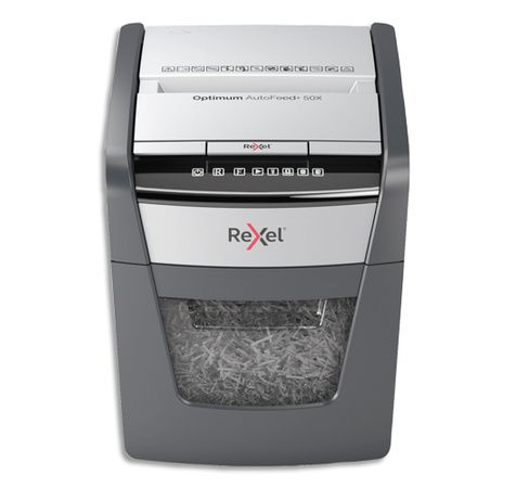 Destructeur Optimum Auto+ 50X •Technologie auto-alimentée pour destruction de 50 feuilles A4 (6 manuel). • Cycle de fonctionnement de 10 min. • Sécurité P-4. • Corbeille de 20 L. • Détruit agrafes, trombones et cartes de crédit.