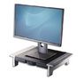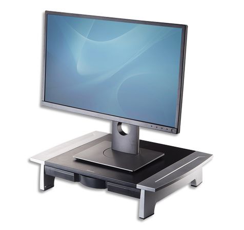 Supporte les moniteurs de type CRT/TFT jusqu'à 36 kg. Hauteur ajustable jusqu'à 5 cm. Possibilité de ranger un ordinateur portable en dessous. (Dimensions max : 17"). Comprend un tiroir de rangement. Dimensions (h x l x p) : 100 x 500 x 364 mm.