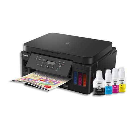 Impression de texte noir extrêmement net et de photos éclatantes sans bordure allant jusqu'au format A4. Nombreux types de papier, mat, brillant, photo, ordinaire, enveloppes, satiné, glacé. Calibré pour des utilisations volumiques, bureautiques, graphiques ou photos en entreprise ou à domicile. G6050
