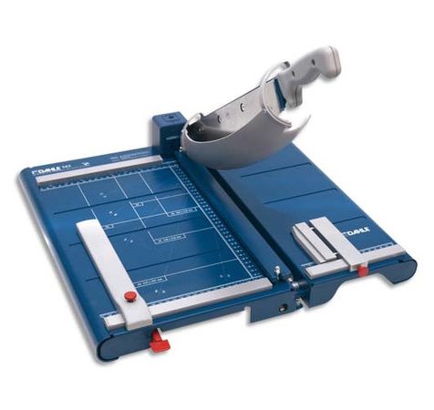 Format A4+. Lame et contre-lame en acier trempé. Dispositif de sécurité à bras tournant et pression automatique de la lame. Longueur de coupe : 360 mm. Dim. table : 440 x 265 mm. Poids : 5,9 kg.