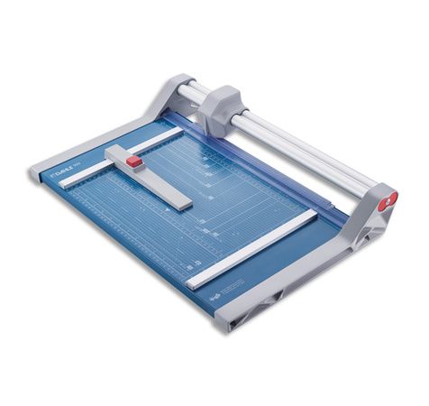 Format A4. Lame circulaire rotative et contre-lame affûtées. Protection de la lame gâce à un carénage plastique entièrement hermétique. Réglette de pression transparente. Butée arrière réglable. Fixation murale possible. Longueur de coupe : 360 mm. Capacité de coupe : 2 mm. Dim. table : 555 x 360 mm. Poids : 2,9 kg.