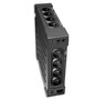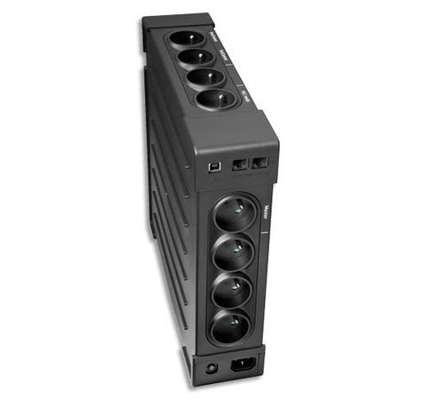 Fonction parafoudre normée IEC61643-1 : témoin lumineux de protection. Technologie Off-line Haute Fréquence avec parafoudre intégré. Tension de sortie : 230 V. Fréquence : 50 / 60 Hz autosélection. Plage de tension d'entrée : Jusqu'à 161V-284V, ajustable par bouton poussoir. Protection-surtensions : 3 MOV. Dissipation totale d'énergie : 461 Joules. Test batterie automatique, batteries remplaçables, indicateur de fonctionnement du parafoudre, protection réarmable par l'utilisateur (disjoncteur), alarme sonore (peut être désactivée), se recharge automatiquement dès qu'il est branché (même en position off).