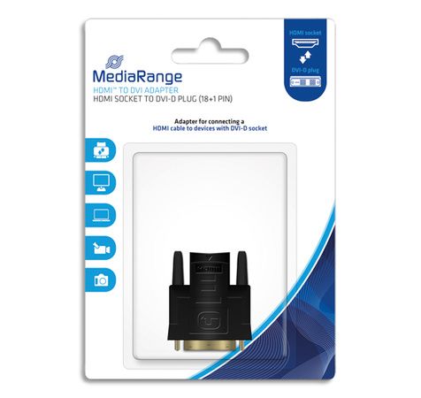 Adaptateur HDMI pour DVI, HDMI DVI-D Mâle/Femelle (24+5 broches), contacts plaqués.