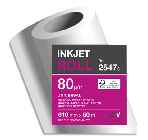 Bobine papier blanc CIE170 Universel 80g pour traceur jet d'encre 0,610mmx50m