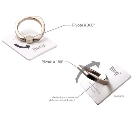 L'iRing est votre présentoir portatif. Nous avons conçu une charnière à friction robuste capable de soutenir votre téléphone en position portrait ou paysage. Et contrairement à nos concurrents, l’iRing ne cédera pas sous le poids de votre appareil. Pour un usage manuel ou en présentoir sur votre table, l’iRing est fait pour vous.