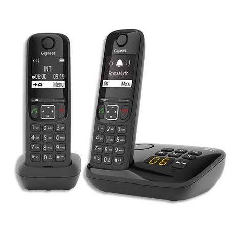 Mains-libres son HSP™. Ecran rétro-éclairé 2". Répertoire 100 contacts. Autonomie : 14 h en communication, 200 h en veille. Blocage d'appel. Conférence à 3 (1 externe + 2 internes) via la Fonction << intrusion >>. Suppression de la sonnerie selon la plage horaire. AS470A : 20 minutes d'enregistrement. Couleurs : noir et blanc.
