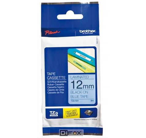 Ruban Pour Ptouch Laminé Noir/Bleu 12mmx8M Tze531