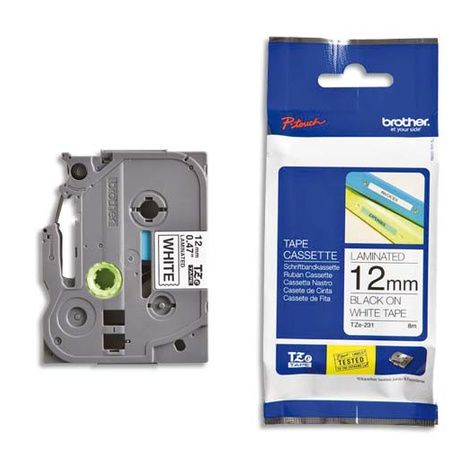 Ruban pour PTOUCH laminé noir/blanc 12mmx8m TZE231