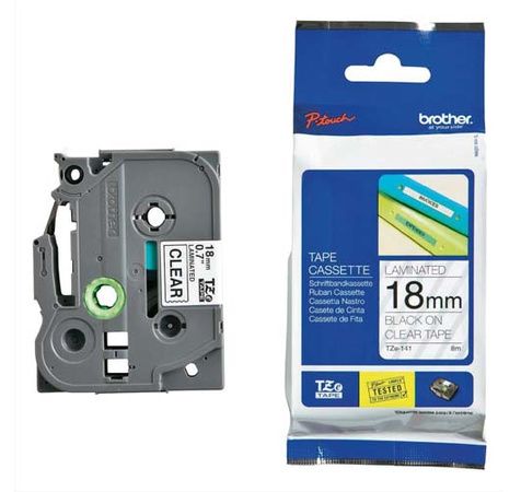 Ruban Pour Ptouch Laminé Noir/Transparent 18mmx8M Tze141