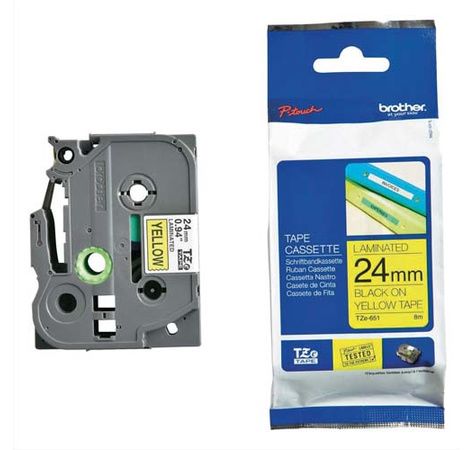 Ruban Pour Ptouch Laminé Noir/Jaune 24mmx8M Tze651