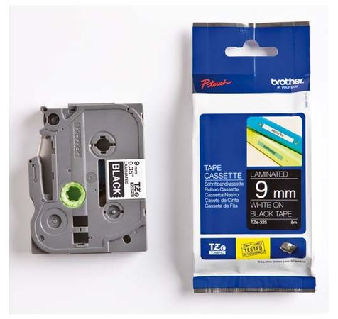Ruban Pour Ptouch Laminé Blanc/Noir 9mmx8M Tze325
