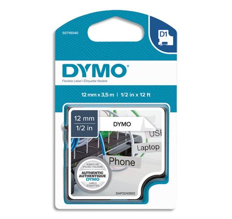 Ruban D1 Nylon Flexible 12mm X 3,5M Noir/Blanc S0718040