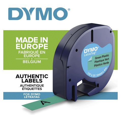 Ruban Letratag Noir/Plastique Vert 12mmx4M