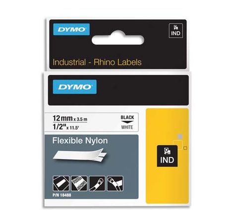Ruban Rhino 12 mm Flexible Nylon Noir Sur Blanc 18488