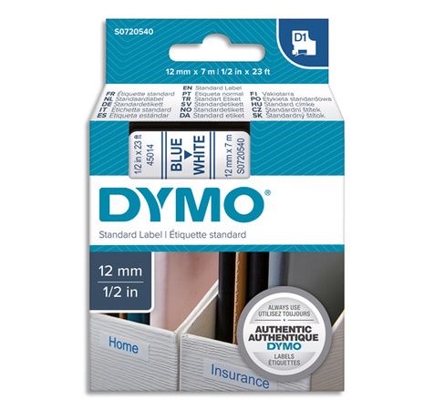 Ruban D1 Bleu/Blanc 12mmx7M Pour 1000/1000+/2000/3500/4500/5000/5515