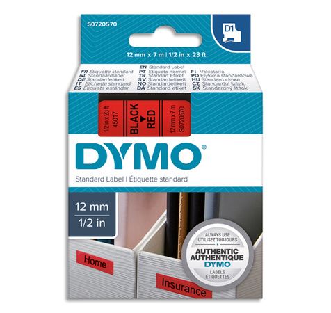 Ruban D1 Noir/Rouge 12mmx7M Pour 1000/1000+/2000/3500/4500/5000/5518