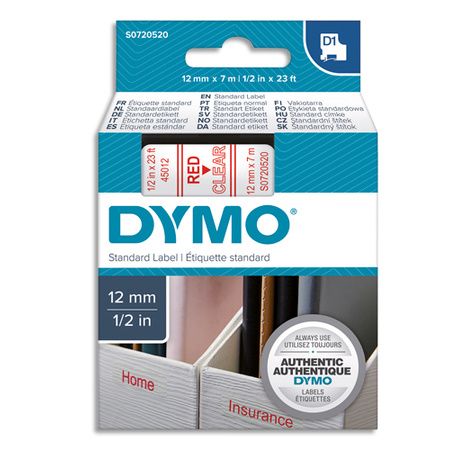 Ruban D1 Rouge/Transparent 12mmx7M Pour 1000/1000+/2000/3500/4500/5000/5513