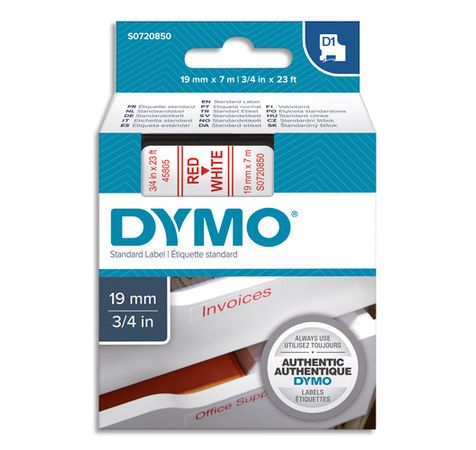 Ruban D1 Rouge/Blanc 19mmx7M Pour 1000/1000+/2000/3500/4500/5000/5526