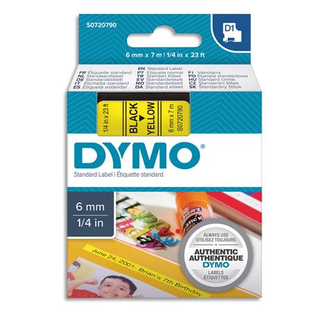 Ruban D1 Noir/Jaune 6mmx7M Pour 1000/1000+/2000/3500/4500/5000/5502