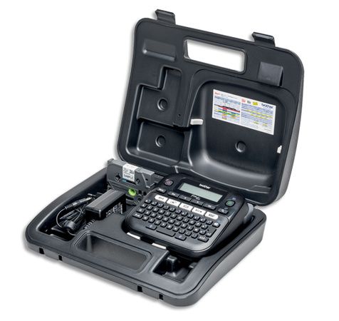 Clavier AZERY, 15 caractères x 1 ligne. Utilise des rubans TZe de 3.5 à 12 mm. Imprime jusqu'à 2 lignes de texte 14 polices, 3 tailles, 8 styles, 617 symboles et 97 cadres. Utilise 6 piles AA (non fournies) ou 1 adaptateur AD-24ES en option : (349108). La PT-D210 VP est identique à la PT-D210 et est livrée avec 1 malette de transport, 1 adaptateur AD-24ES et 1 ruban TZe Noir/Blanc 12 mm.