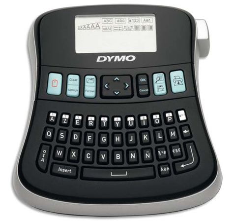 Clavier AZERTY, configuré en fonction du pays d'utilisation. Créez rapidement des lots d'étiquettes, imprimez jusqu'à 10 exemplaires d'une même étiquette. Impression sur 1 ou 2 lignes par étiquettes. Fonctionne avec 6 piles AA (non fournies). Adaptateur secteur en option (110906). Livrée avec 1 ruban D1 12 mm Noir/Blanc.