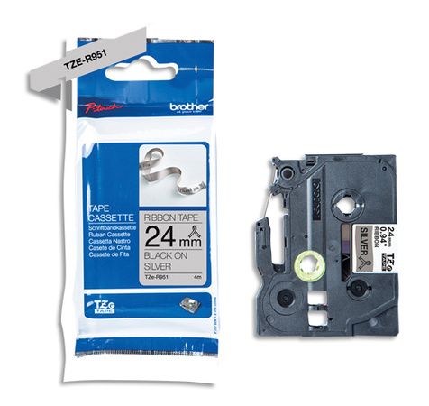 Ruban TZER951 24mmx4m noir sur gris, tissu non adhésif