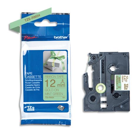 Ruban TZERM34 12mmx4m or sur vert menthe, tissu non adhésif
