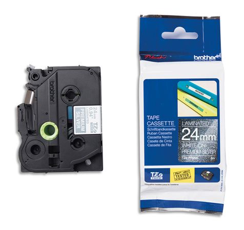 Ruban laminé Blanc sur Argent premium TZE-PR955 24 mm X 8 m