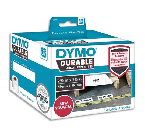 Les étiquettes résistantes LW DYMO® possèdent un revêtement adhésif industriel et robuste qui résiste au décollement et à l'abrasion dus à la chaleur, à l'humidité et aux solvants.