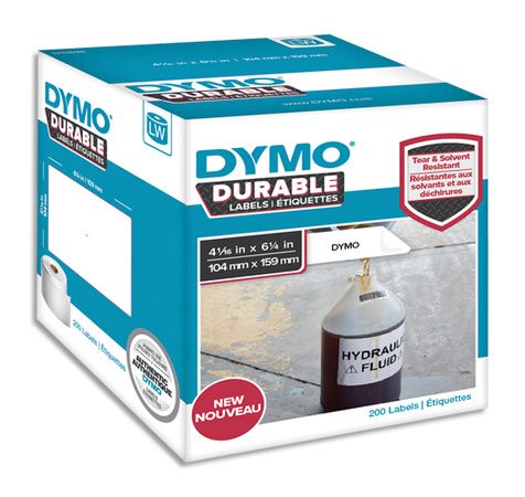 Les étiquettes résistantes LW DYMO® possèdent un revêtement adhésif industriel et robuste qui résiste au décollement et à l'abrasion dus à la chaleur, à l'humidité et aux solvants.