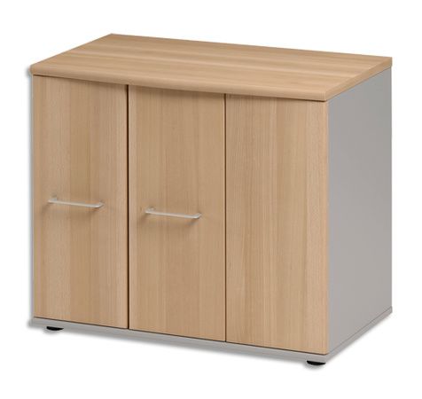 Rangement bas 3 portes dont 1 coulissante + 1 étagère Jazz Hêtre gris clair
