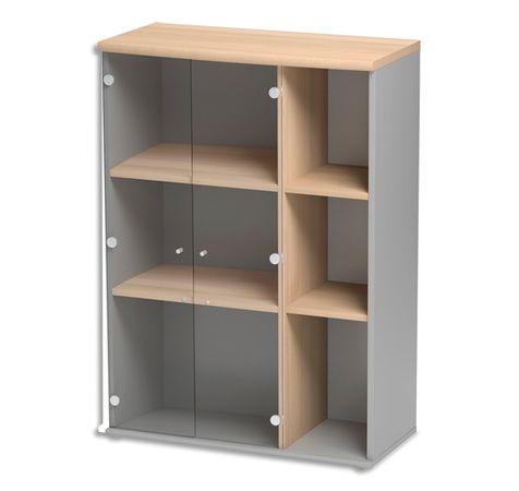 Rangement haut 2 portes vitrées Jazz L80xH114/112xP39 cm Hêtre gris clair