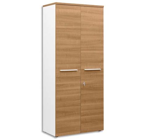 Armoire Haute 2 portes pleines Yes façade et dessus Merisier - L80 x H187 x P42 cm