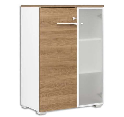 2 portes dont 1 porte vitrée. Verrouillage simple de la porte bois. L80 x H114 x P45 cm