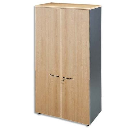 Armoire Haute Ligne MT3 Confort Syracuse Portes Pleines 1 Tab. Fixe+3 Amovibles Hêtre Antharcite L90