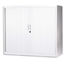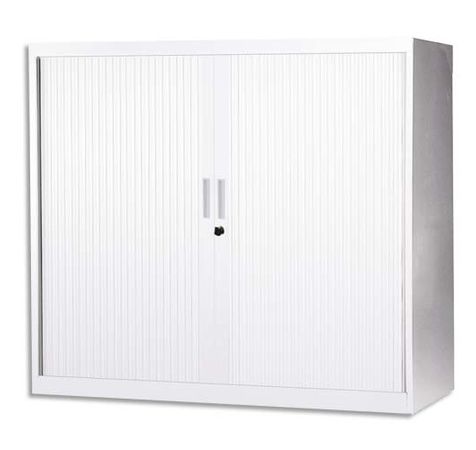 Armoire Basse Métal Monobloc Corps/Rideaux Blanc 2 Tablettes Dim. L120 X H105 X P43 cm
