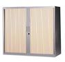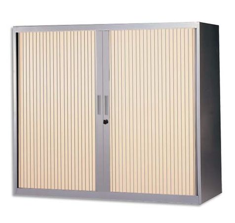 Armoire Basse Métal Monobloc Corps Silver/Rideaux Chêne Clair 2 Tablet. Dim 120X105X43cm