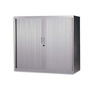Armoire Basse Métal Monobloc Corps Et Rideaux Silver 2 Tablettes - Dim. 120X105X43cm