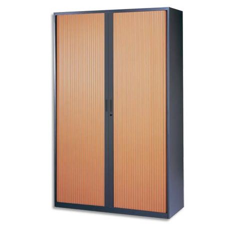 Armoire Haute Métal Monobloc Corps Anthra./Rideaux Merisier 4 Tablet. Dim. 120X198X43cm