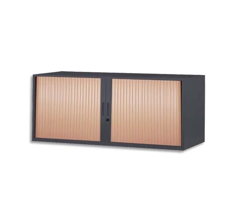 Corps monobloc soudé en tôle, épaisseur 0,7 mm, laminée à froid. Perforations à l'intérieur de l'armoire, tous les 20 mm pour réglage des tablettes. Rail dans le top de l'armoire pour recevoir des classements suspendus. Rideaux en PVC (classé anti-feu M1 et teinté dans la masse). Fermeture centrale à l'aide d'une serrure avec 2 clés pliables. Poignées en ABS dans la teinte de l'armoire. Les tablettes ont une force portative de 60 kg au minimum par mètre courant. Coloris de tablette identique à celui de l'armoire . Les armoires hautes sont équipées de 4 tablettes + un jeu de rail pour 5ème rangée de DS. Les armoires basses sont équipées de 2 tablettes + un jeu de rail pour 5ème rangée de DS.