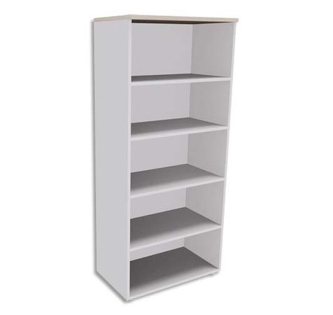 SIMMOB Armoire Haute 4 tablettes sans porte Blanc perle, top Chêne clair INEO - Dim : L80 x H180 x P